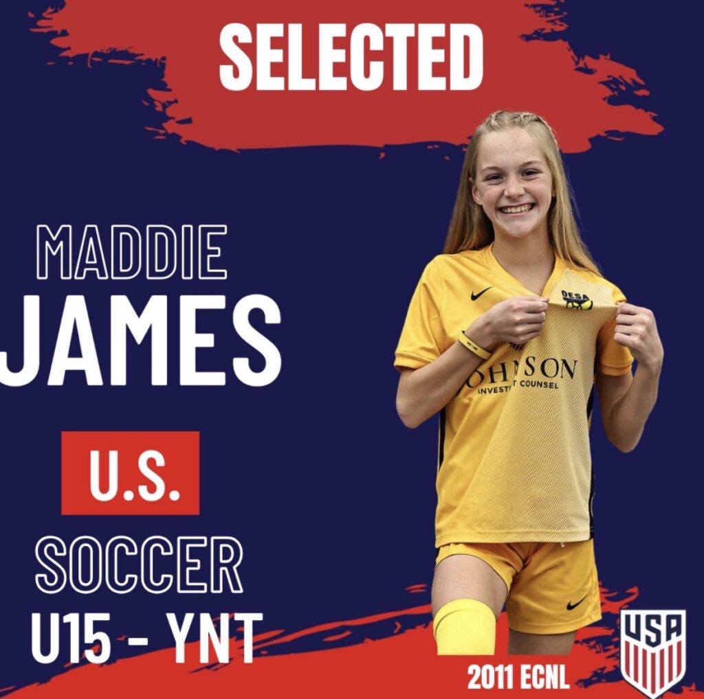 Congratulations to Maddie James on being selected to the upcoming USYNT Camp in England on April 21-29! Good luck, Maddie! Maddie plays on our 2011 ECNL Team.